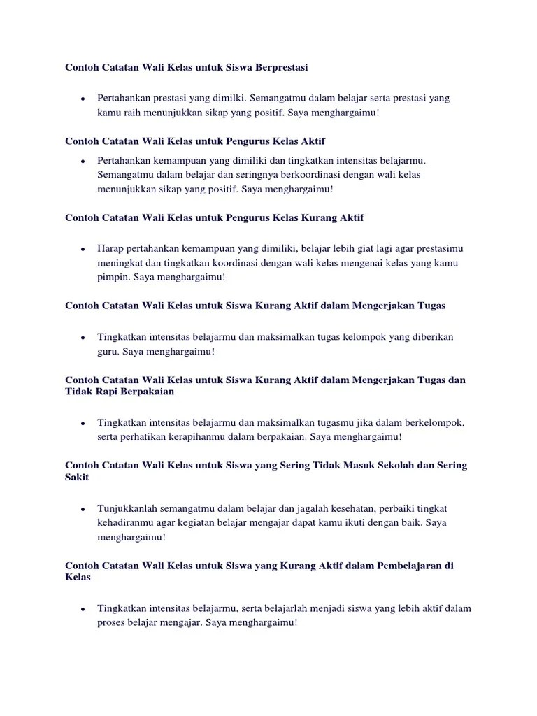 Pelaporan pada umumnya bersifat singkat, bersifat umum, dengan catatan yang hampir sama pada tiap peserta didik. Sebagai catatan tambahkan karakter pada akhir kode untuk membedakan dengan bawaan aplikasi contoh 3.1.a. Contoh kata kata catatan wali kelas di raport | contoh soal dan contoh. Contoh kata kata catatan wali kelas di raport | contoh soal …. Contoh deskripsi karakter, catatan pengembangan, dan catatan akademik.